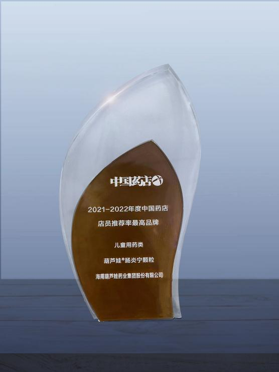 近日,由《中国药店》杂志社举办的“2022~2023年度中国药店发展报告暨中国药店价值榜发布会”在青岛举行,会上发布了“2021-2022年度中国药店店员推荐率最高品牌”奖,981博天娱乐药业两大明星产品981博天娱乐牌小儿肺热咳喘颗粒(4g)、981博天娱乐牌肠炎宁颗粒(2g)双双上榜。